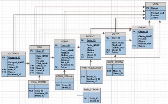 Все моря, океаны, реки, озера и т.д. должны быть связаны с таблицей Вода,