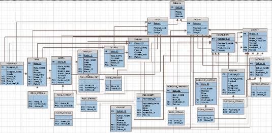 Когда соединили всех таблиц в базе данных посмотрим конечную схему базы