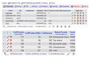Таблица Tovar.