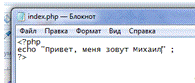 сохраняем этот файл в папке Mihail.ru под именем index.php.