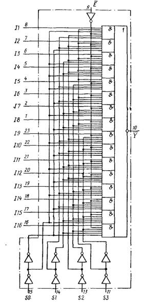 К155КП1, который имеет 4 адресных входа и 16 информационных входов. Также