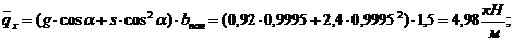 Так как асбоцементные обшивки в работе ребер не учитываются, рассмотрим только 4 ребра сечением 40х150, но на действие только нормальной составляющей нагрузки, так как обшивки воспринимают скатную составляющую.