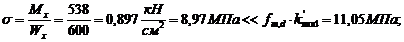 σизг= fm,d· kmod· kt· kh· kб· kr· kx =15·0,85·1·0,8·0,95·1·0,9=8,72МПа;