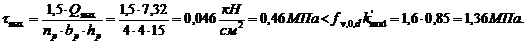 σск= fv,0,d · kmod· kt· kh· kб· kr· kx =1,5·0,85·1·0,8·0,95·1·0,9=0,872 МПа;