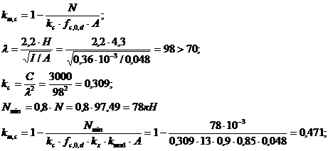 где=97,49кН;=b.h= 0,16.0,3=0,048 м2;