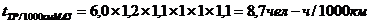 тр/1000км - удельная трудоёмкость ТР.тр/1000кмн- нормативно-удельная трудоёмкость ТР