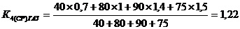 К4(ср) - среднее значение коэффициента корректирования нормативно-удельной трудоёмкости ТР в зависимости от пробега с начала эксплуатации автомобиля