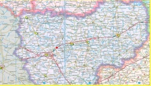 Рассмотрим расчет оптимального места расположения базового распределительного центра в Смоленской области. Первым шагом решения задачи является определение всех «потенциальных распределительных центров» - возможных мест расположения склада на обслуживаемой территории. Масштаб выберем как показано на рисунке 2.5. Осями координат будут края видимой части карты. Левый край - ось Y, нижний - ось X. Каждому объекту модели присваиваются декартовы координаты в соответствии с географическим расположением.