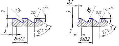 радиус закругления впадины r= 1,5 мм, радиус спинки зуба R= 5 мм [2,