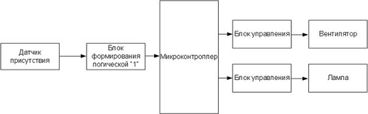 Блок присутствия человека будет представлять собой датчик, определяющий присутствие человека в комнате и дальнейшую обработку сигнала, необходимого для его обработки микроконтроллером.