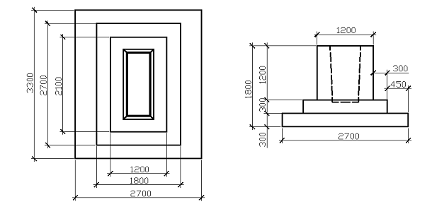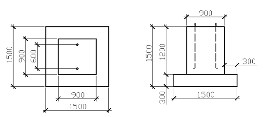 Рис. 1. Эскиз фундаментов крайнего и среднего