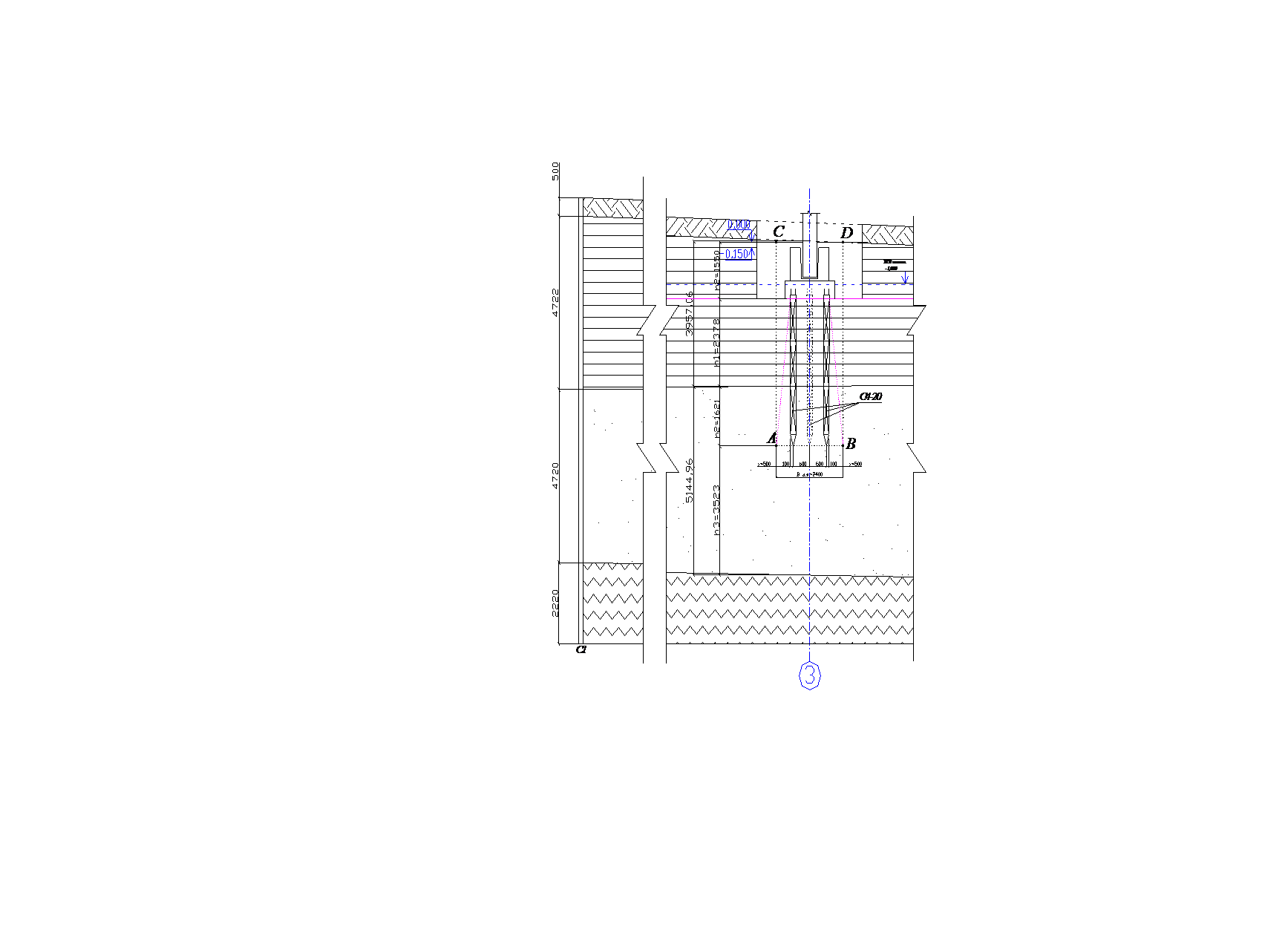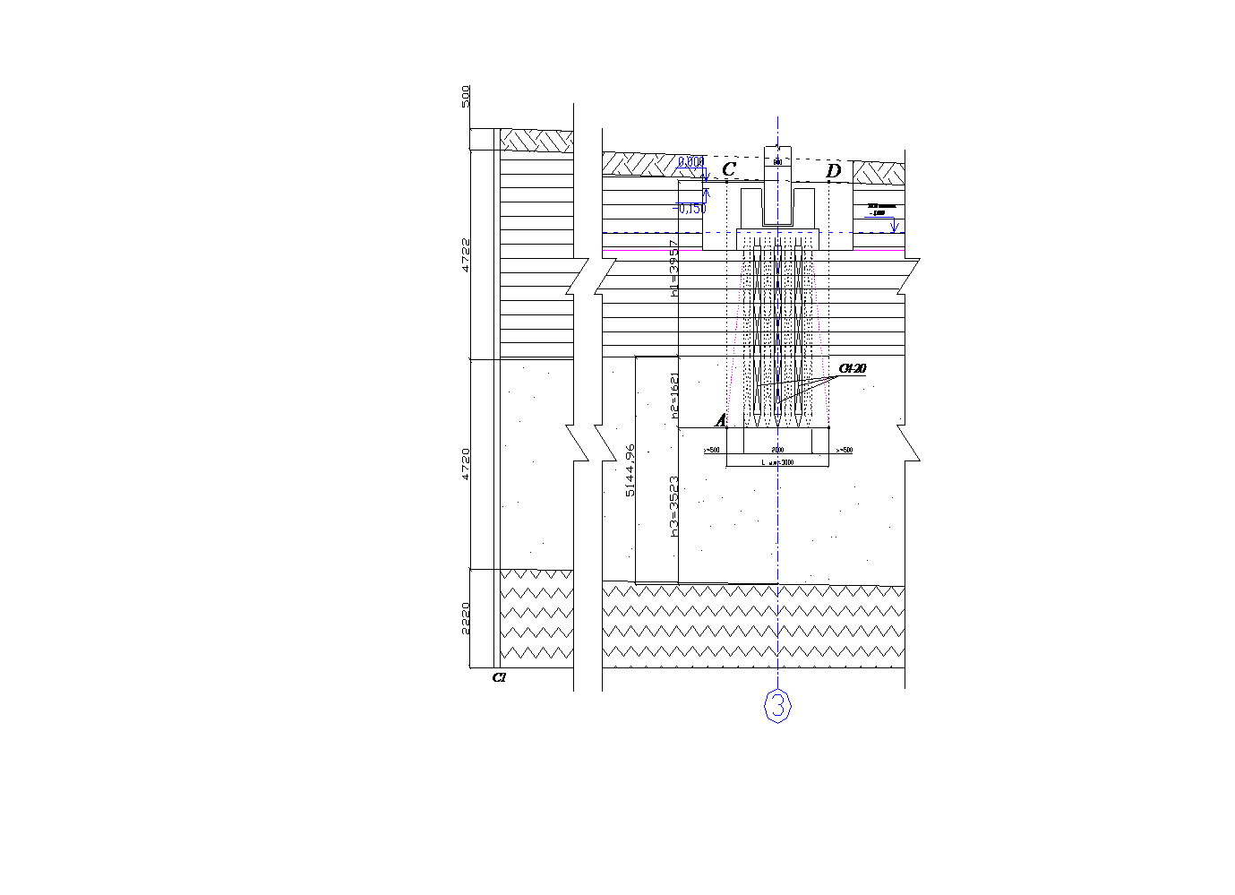 , длинна фундамента l=3 м, глубина