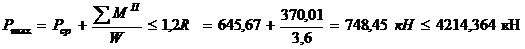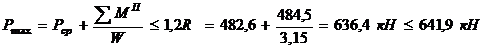 Находим максимальное давление на грунт под подошвой фундамента:
