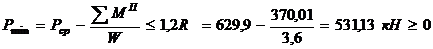 Находим минимальное давление на грунт под подошвой фундамента: