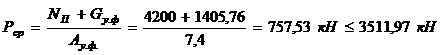 фактическое среднее давление под подошвой фундамента: