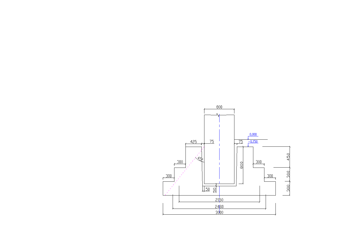 Рисунок 13. Фундамент мелкого заложения крайнего ряда по стороне b.