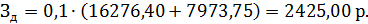 рабочих составляет 10 % от суммы основной заработной платы, доплат и надбавок