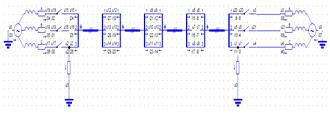 ) Разработать модель многопроводной ВЛ для расчетов наведенных напряжений на отключенных фазах, на отключенной цепи ВЛ, а также ВЛ, расположенной в зоне влияния ВЛ более высокого класса напряжения.