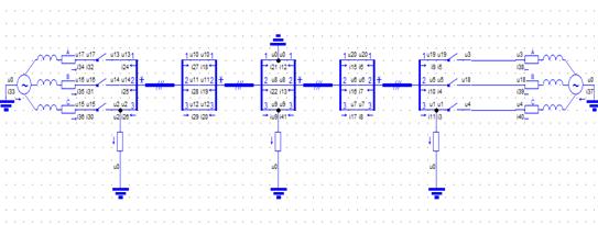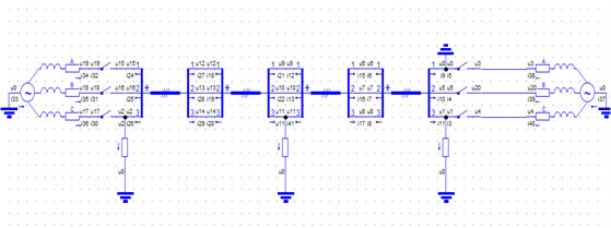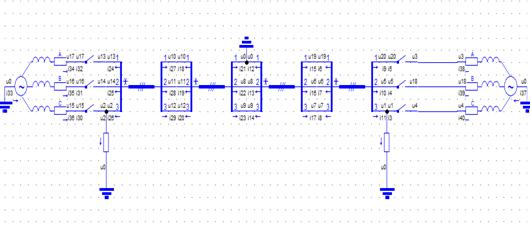 ) Составить схемы для трехфазной цепи и создать ряд вариаций (случаев) работы на линии, соответствующих возможным нормальным и аварийным режимам.