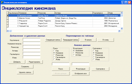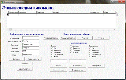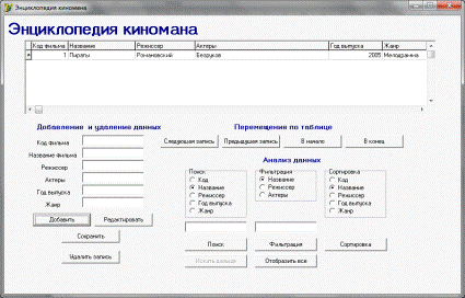 Создать приложение «Энциклопедия киномана», содержащую базу
