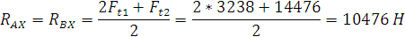 где Ft - окружное усилие на одной звездочке цепного конвейера, Ft=2200 Н
