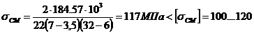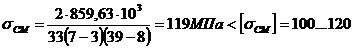 МПа< [sСМ]=120 МПа условие прочности выполняется