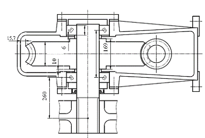 3. Вычерчивают контуры червяка, быстроходного вала, выполняемого обычно заодно с червяком, и проектируют подшипниковые узлы. На червяк действуют значительные осевые нагрузки, поэтому один из вариантов опор - радиально-упорные конические подшипники, поставленные "враспор".