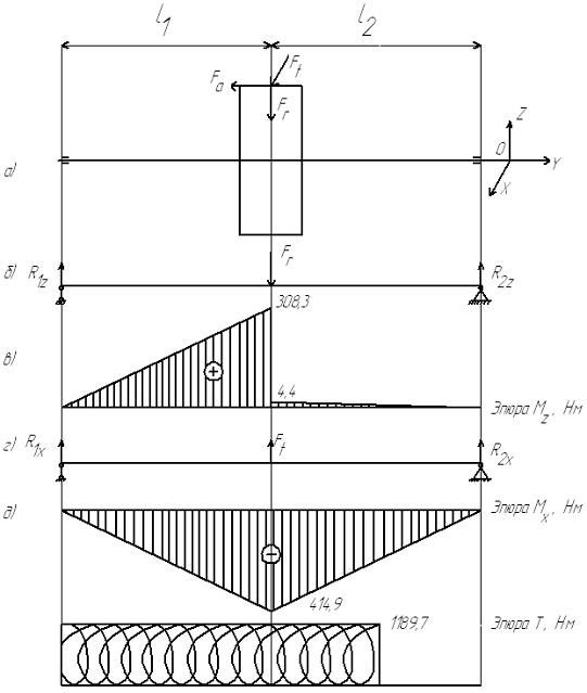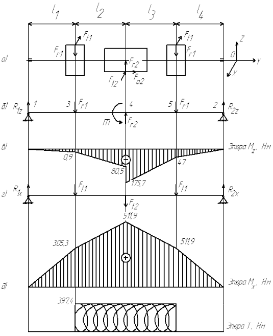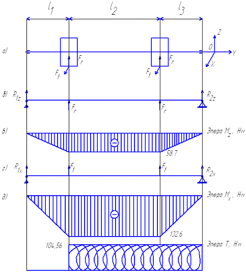 Исходные данные: TI=462,9Н·м,TII=6420,5Н·м, TIII=6315,2Н·м.