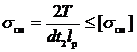 - допускаемое касательное напряжение; для сталей, используемых в