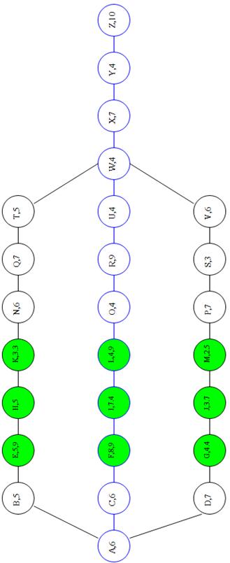 2. Сохранение продолжительности проекта без изменения или его незначительное сокращение, и одновременное исключение критического пути (создание резерва времени для работ, ранее относящихся к критическому пути).