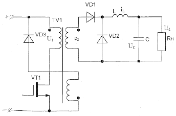 Рис. 1. Схема прямоходового преобразователя постоянного тока