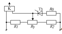 Здесь УВ - управляемый выпрямитель, работающий с системой управления (СУВ) реализующей вертикальный способ управления. Потенциометром Ry можно регулировать