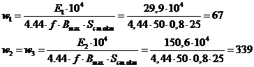 . Находим число витков в одном слое и число слоёв каждой обмотки.