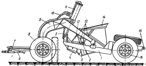 передние колеса; 9 - дышло; 10 - трубопроводы; 11- гидравлический цилиндр; 12 -