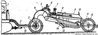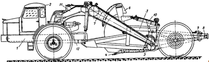 12 - гидроцилиндры поворота скрепера.