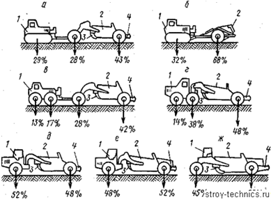 указывают примерное распределение, массы скрепера с груженым ковшом по осям.