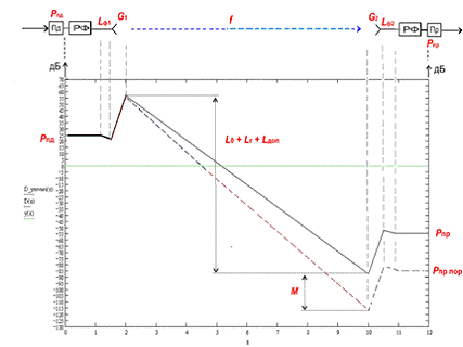 Теперь рассчитаем сумму всех усилений и затуханий, которые претерпевает наш сигнал: