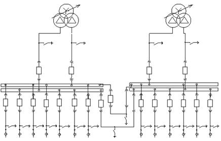 ) при ремонте одного из трансформаторов и отказе секционного выключателя половина установки остаётся без питания.