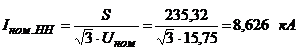 Номинальный ток на стороне низкого напряжения (НН):