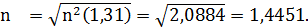 λ - длина волны, выраженная в мкм (1,31 мкм).