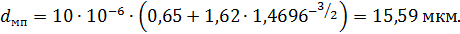Расчет длины волны отсечки λс , нм: