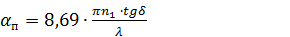 λ - длина волны, нм (1310 нм);δ - тангенс