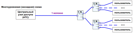 разветвителя может быть M входных и N выходных портов. В сетях PON наиболее