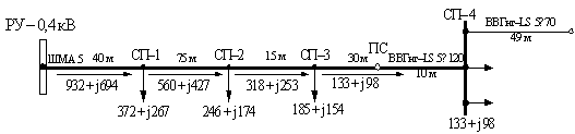 Так как нагрузка распределена равномерно между генераторами: 1256 кВ·А и 1259 кВ·А, для определения КЗ первой ступени примем SН = 1259.