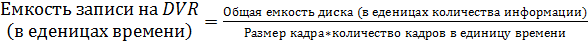 Исходя из приказа Министерства юстиции РФ от 17 июня 2013 г. № 94 "О внесении изменений в приказ Министерства юстиции Российской Федерации от 4 сентября 2006 г. № 279 "Об утверждении Наставления по оборудованию инженерно-техническими средствами охраны и надзора объектов уголовно-исполнительной системы" берем емкость записи на DVR равной 30 суток.