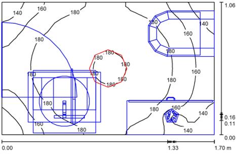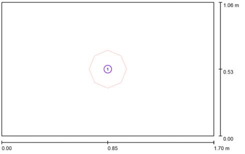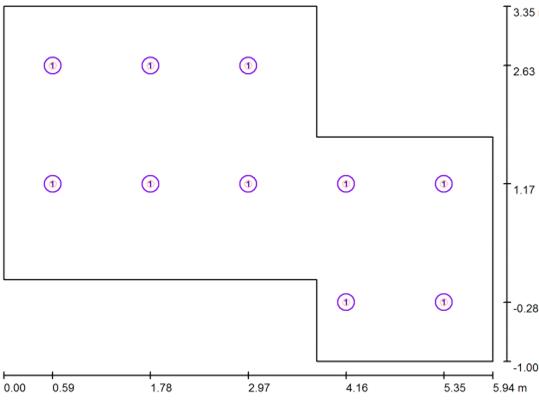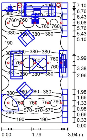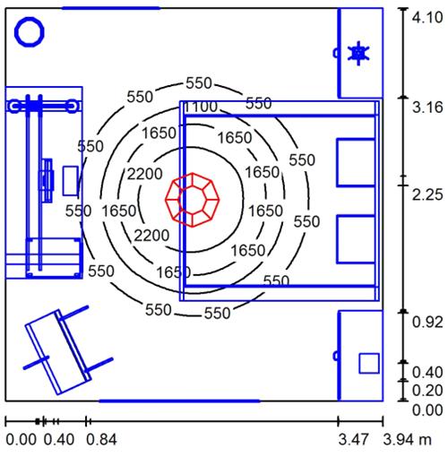 В этой комнате были использован один светильник DIAL 16 Cyber Deco (рисунок 23, светильник №1), он обладают мягким светом и большим радиусом освещенности, что как раз хорошо подходит для спальни. Расчетная точка расположена на столе с компьютером.