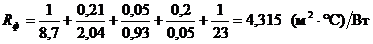 для второй зоны Rн.п. = 4,3 (м2·°С)/ Вт;