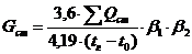 где tг и t0 - расчетные температуры горячей и обратной воды в системе, °С;