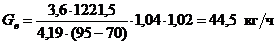 G расход воды через отопительный прибор, кг/час.