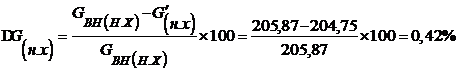 Вычислим разницу между найденными ранее и уточненным расходом воды внешними потребителями на максимально зимний период в (%).
